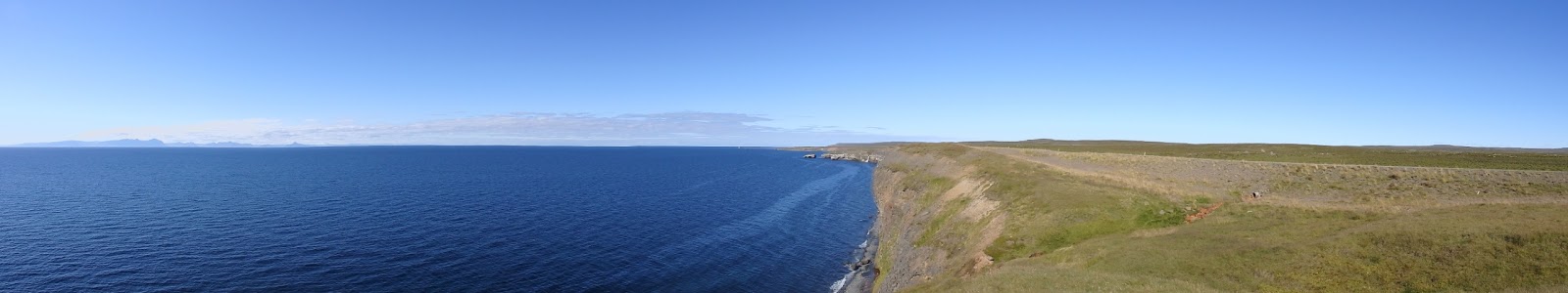 I wake to clouds and a cold northeast wind. I look north and watch the blue sea. The wind push me back and forth. Dirt road keep the ride slow. Horses are being moved to winter pastures. Herds of horse pass me on the road. Winter is coming.