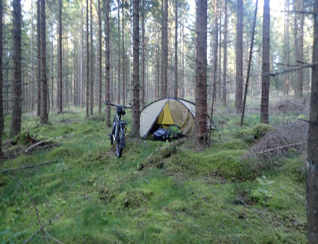 Road veers from the river. Stop in at Hagfor bibliotek and shop for